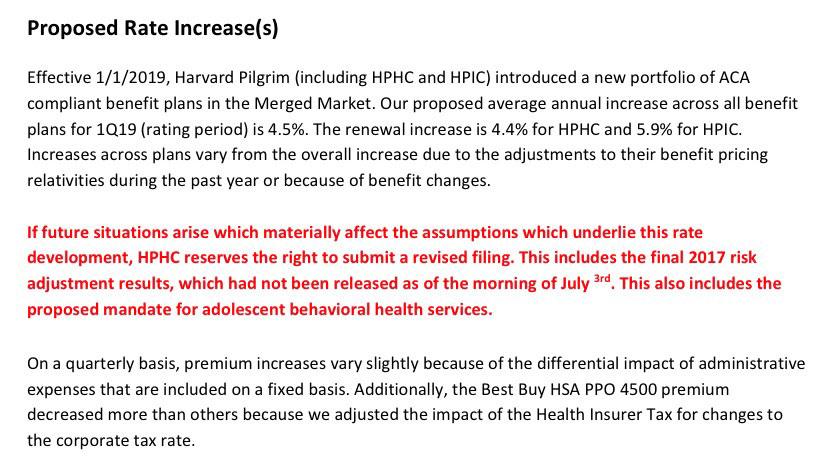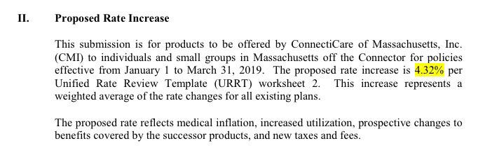 Massachusetts: Preliminary 2019 ACA rate hikes: 4.1% (rough); NO #ACASabotage impact