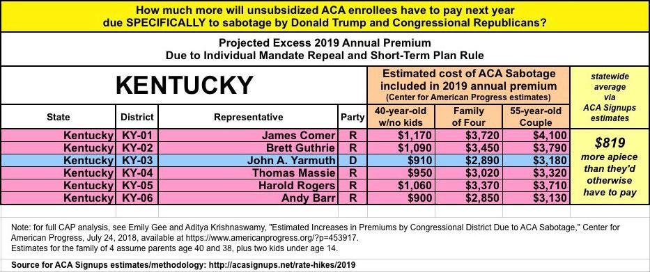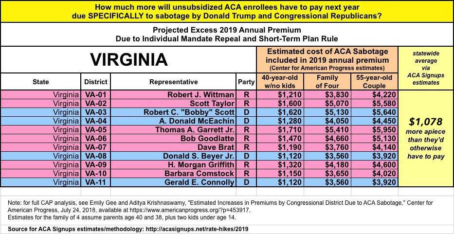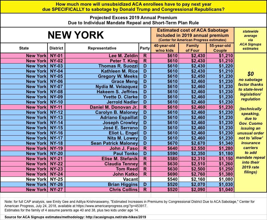 As they also know, last year and again this year I've expanded on this by breaking out the portion of the annual rate increase which can be tied directly to sabotage efforts by the Trump Administration and Congressional Republicans. For 2018, this boiled down to roughly 17 points of the total nationwide increase being sabotage-related. It varied greatly by state, carrier and plan, but nationally, I estimated that without last year's ACA sabotage efforts, average premiums would have gone up around 11% instead of around 28%.