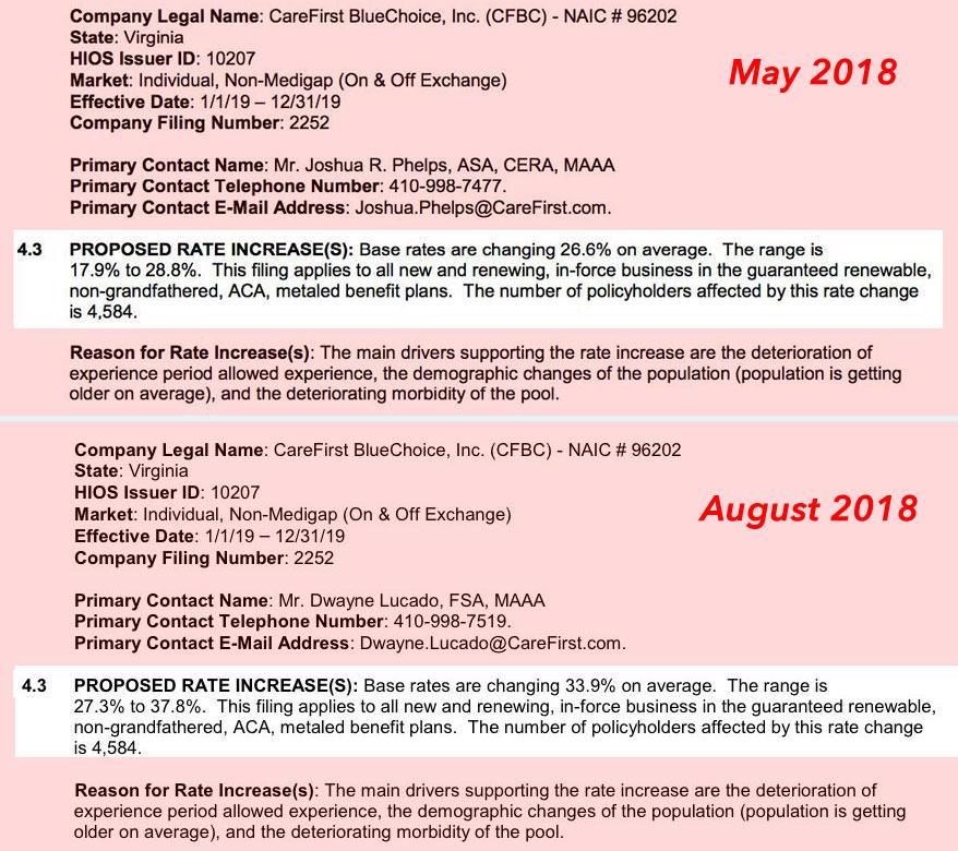 On the other hand, CareFirst has actually increased their 2019 rate hike request even more, as has Kaiser (slightly), so I could be wrong: