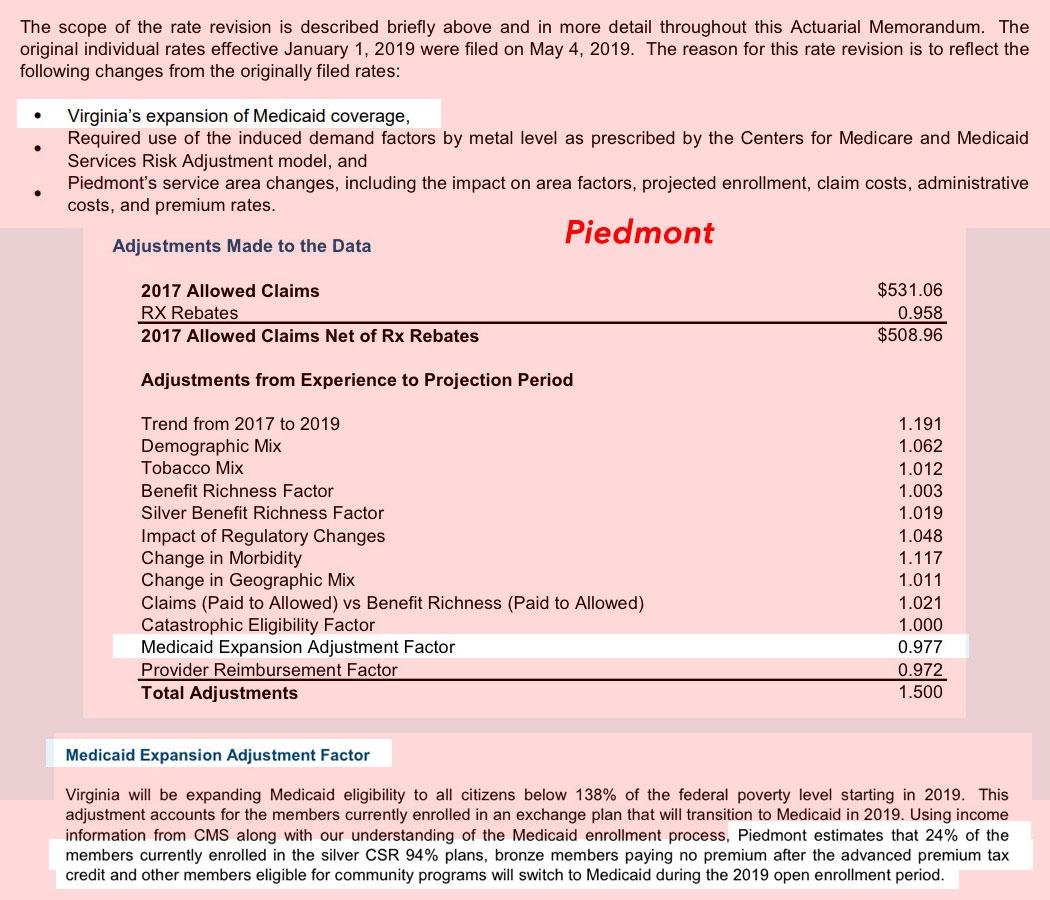 Virginia's preliminary rate requests averaged about 13.4% higher back in mid-May...about two weeks before the Medicaid expansion bill was passed and signed into law.