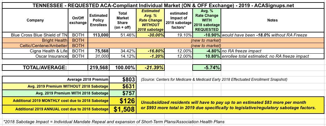 Tennessee: w/RAFreeze resolved, avg. 2019 rates will drop 11%...but WOULD have dropped ~23% w/out #ACASabotage