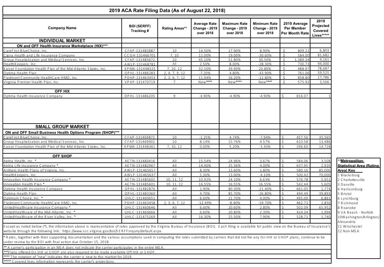 When I first ran the preliminary 2019 ACA individual market rate filings for Virginia way back in May, I concluded that the average premium increase will be around 13.4%. However, a lot has changed since then.