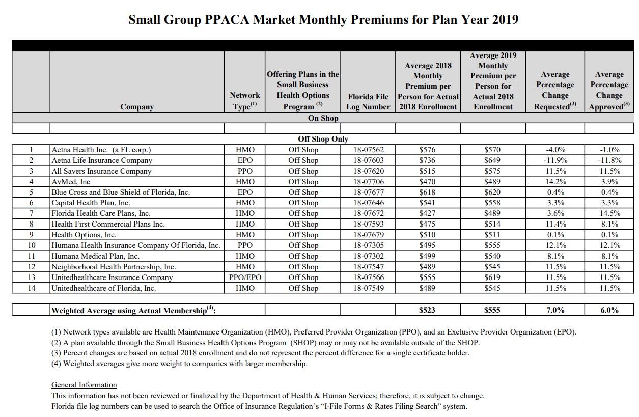 FLOIR also provided the small business rate increases, which are, interestingly, going up more on average than the individual market, which isn't something you see very often. In fact, Florida individual market plans are expected to only average around 14% more than small group plans next year.