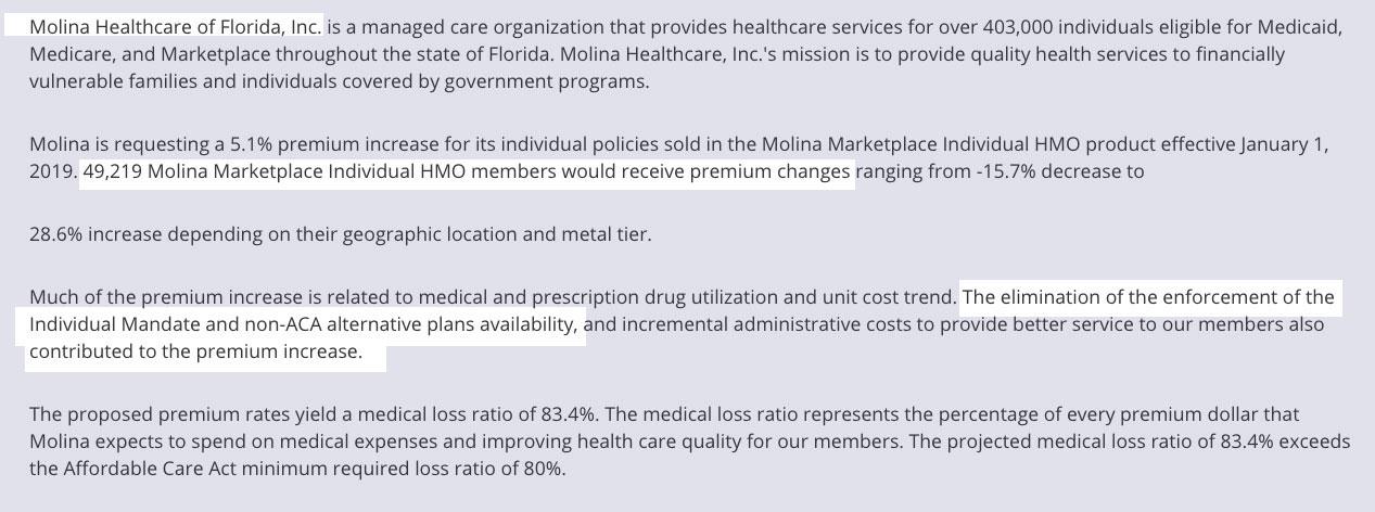 Florida: APPROVED 2019 #ACA rate hikes: Just 5.2%...but likely would have DROPPED ~6% without #ACASabotage