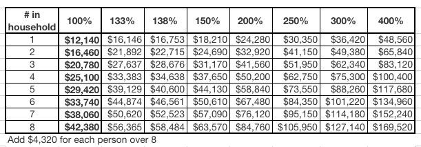 As a reminder, here's the 2018 Federal Poverty Level income chart for every state except Alaska and Hawaii (Alaska is 25% higher, Hawaii is 15% higher):