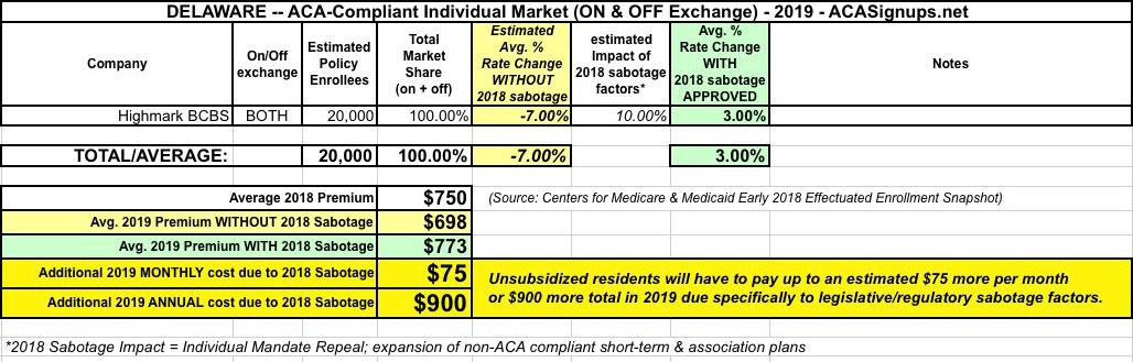 UPDATE: Delaware: Approved 2019 ACA rates: 3% HIGHER, would likely be ~7% LOWER w/out #ACASabotage