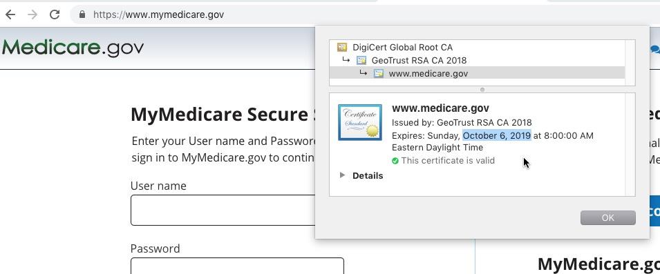 ...and out of curiousity, I decided to check out the SSL certificate status of a few key federal healthcare websites: