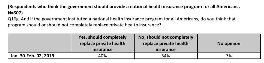 "Allow people to keep the coverage they have if they prefer" CLEARLY IS TALKING ABOUT MAJOR MEDICAL POLICIES, NOT SUPPLEMENTAL (although some might have concerns about their supplemental coverage, like MediGap, as well). And there's a whopping 18-point gap between those who say they support Bernie-MFA (which would be mandatory) and those who support making it optional for people to enroll or stick with private coverage (nearly all of which would be employer-based coverage, since around 11x as many people have employer coverage than individual market coverage in the first place).