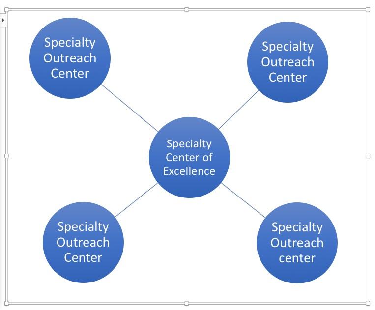 6. Value Based Centers of Excellence with Surgical and Medical Subspecialties forming Hub and Spoke Outreach Centers providing specialty access to all PCMH’s.