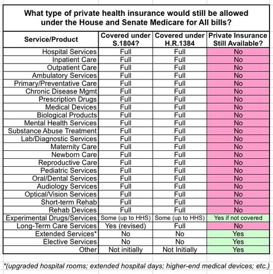 For example, the MFA language states that hospitalization would be “comprehensively” covered...but doesn’t list any limits on hospital days, for instance. It doesn’t clarify whether “comprehensive” coverage of medical devices includes the bare bones model or the enhanced one with digital readout and built-in wi-fi. Most of those specifications would be left up to the HHS Secretary and/or a board of some sort to determine. Whatever they come up with, presumably private supplemental insurance could cover the rest.