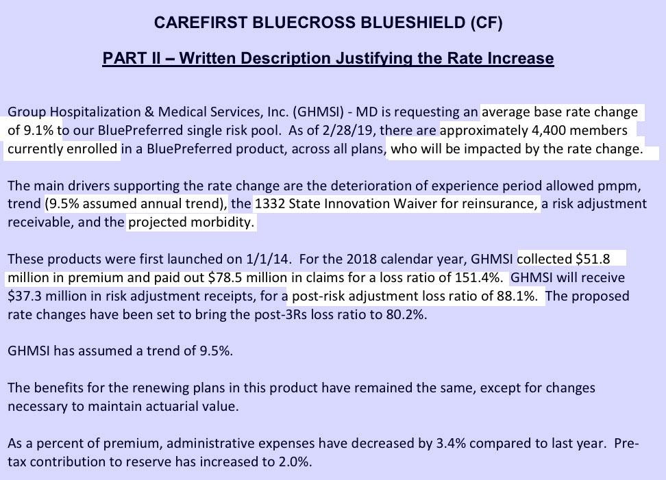 • CareFirst of Maryland Inc. and Group Hospitalization and Medical Services Inc. (GHMSI) (both CareFirst companies) PPO – a +9.1% increase;