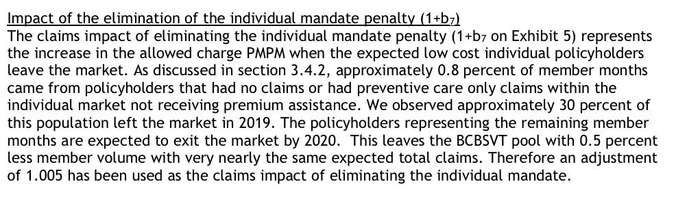 Um...yeah. The law they ended up passing last year doesn't specify how much the financial penalty would be, nor does it even require the enforcement mechanism be a financial penalty. As a result, the insurance carriers appear to be kind of ignoring it for the time being, though they'll presumably modify their 2020 request if and when the VT legislature decides exactly how they plan on enforcing the mandate.