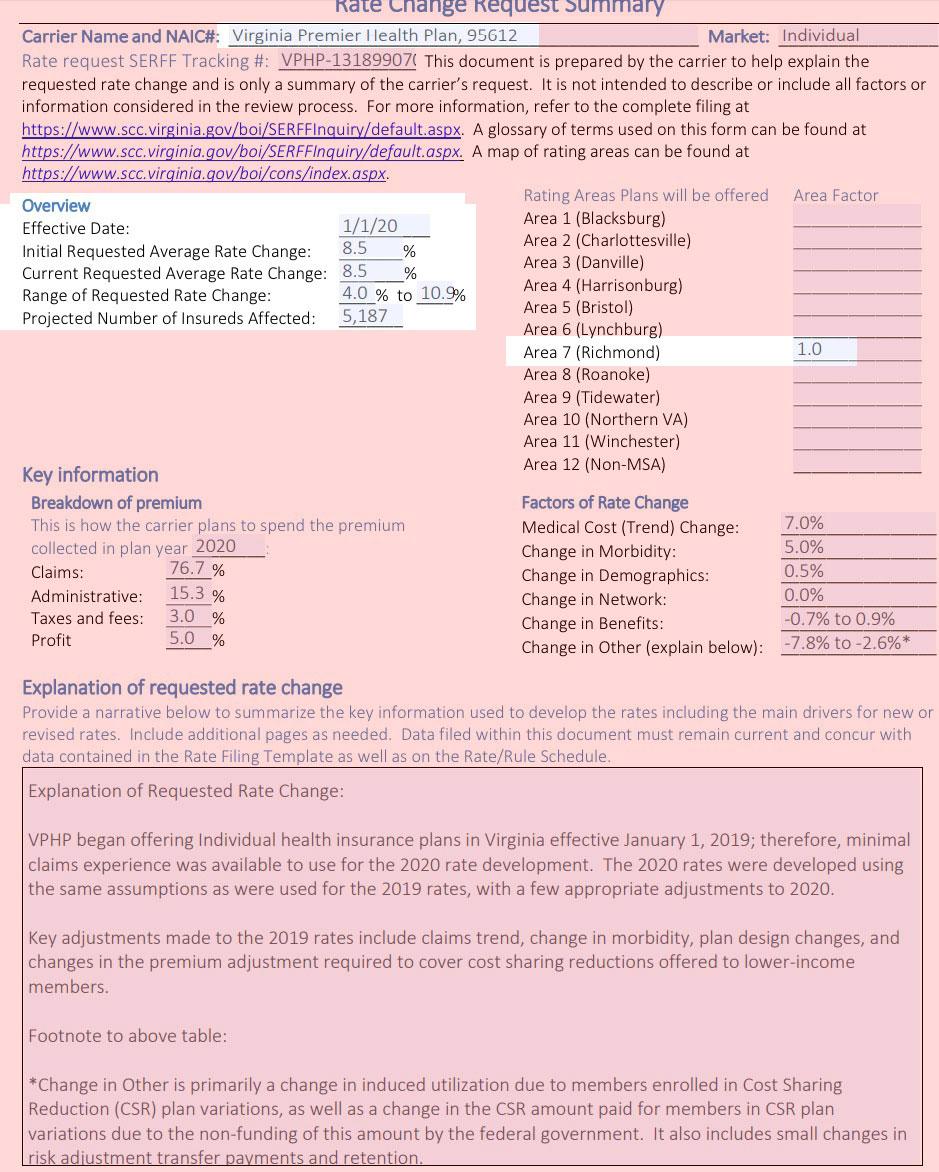 Virginia is traditionally the first state to release their preliminary individual (& small group) market healthcare policy rate changes, but this year the state insurance regulatory body delayed the initial deadline by a couple of weeks. As a result, three other states (Maryland, Vermont and Oregon) beat Virginia to the punch this year.