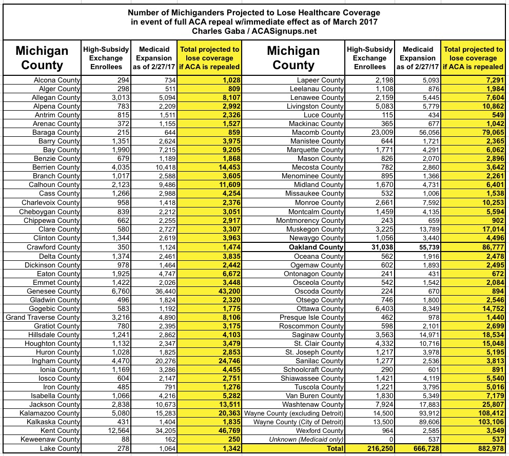 Michigan: 20,000 *more* would lose coverage post-ACA repeal than just a few weeks ago.