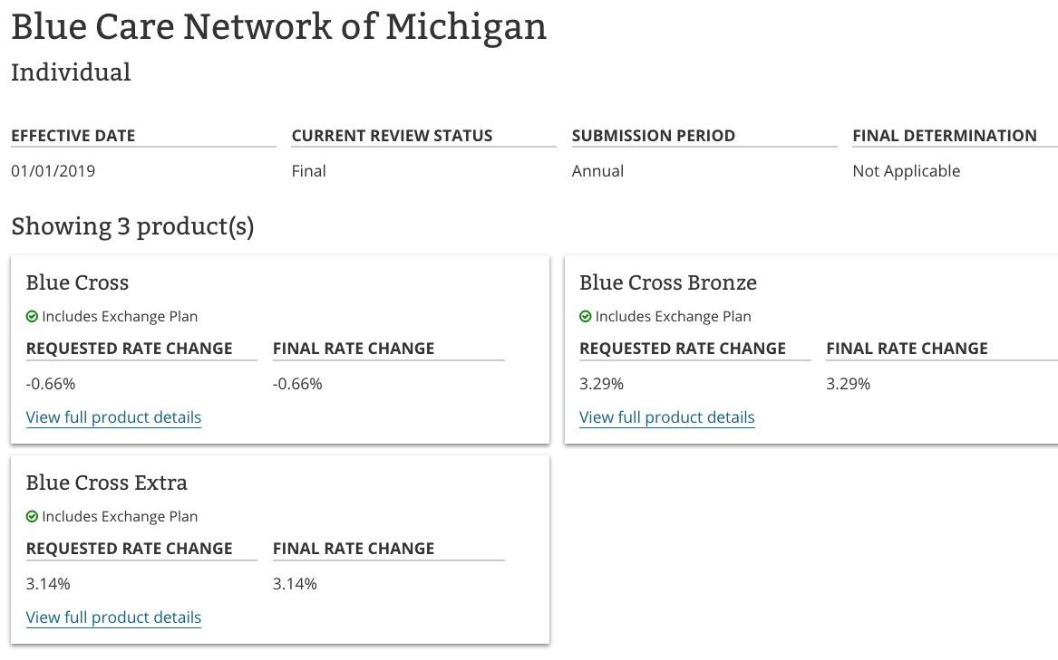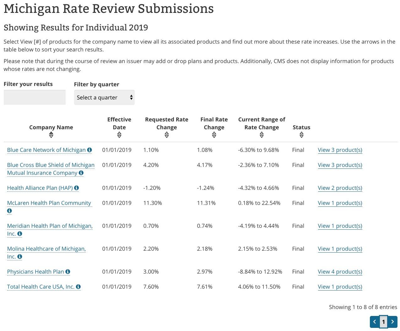Other than that, however, they've made some additional changes and improvements once you get into the results. For instance, here's the 2019 listings for Michigan's individual market: