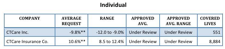 The proposed average individual rate request is 7.8 percent increase, compared to 12.3 percent in 2019 and ranges from -9.8 percent to 25.7 percent.