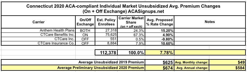 Connecticut: PRELIMINARY avg. 2020 #ACA exchange premiums: 7.8% increase