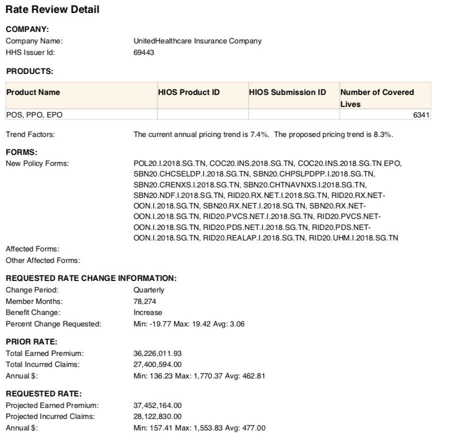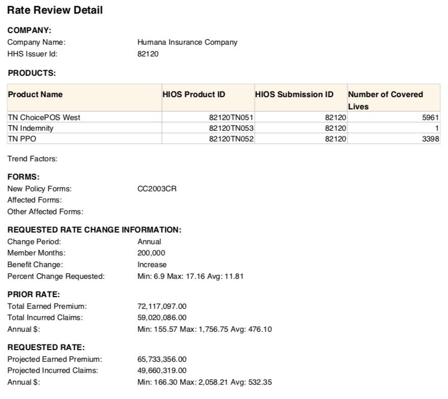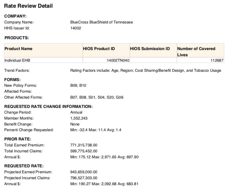• BlueCross BlueShield of Tennessee: Expanding coverage into Nashville, Memphis and surrounding counties. Proposed 2020 rate request seeking an average increase of 1.4%.
