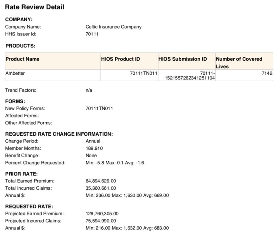 • Celtic/Ambetter Insurance: Coverage continues in Chattanooga and Memphis and expands into Nashville and Knoxville; rates decrease an average 1.6%.