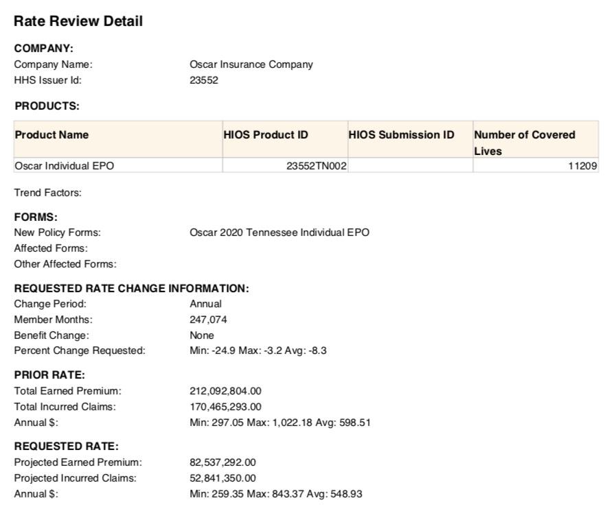 • Oscar Health: Coverage continues in Nashville and Memphis; rates decrease an average of 8.3%.