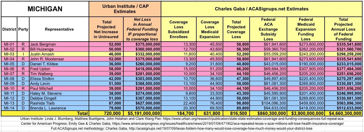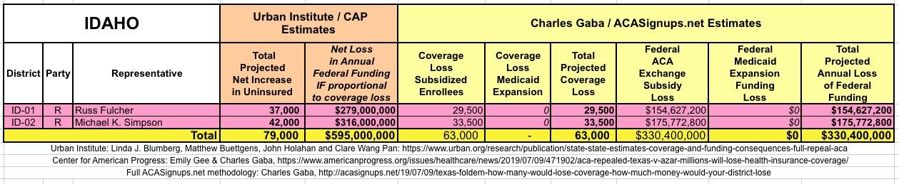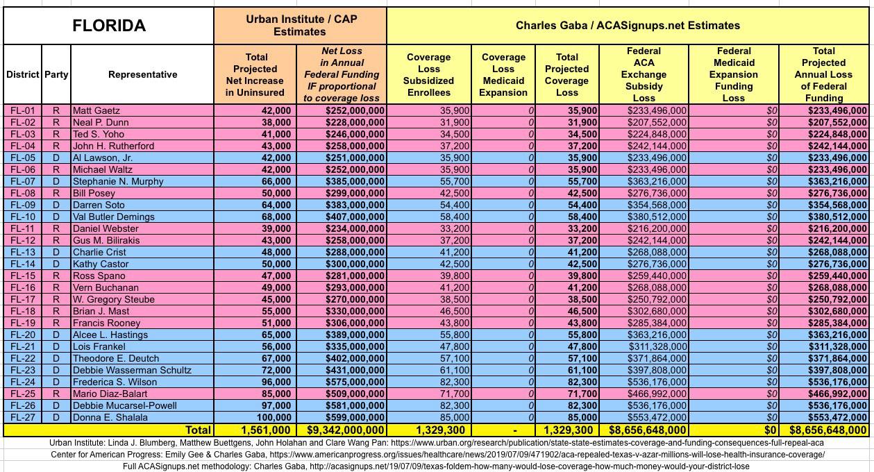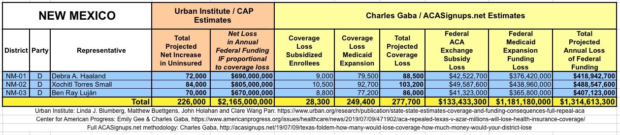 I've also gone further yet by tallying up the coverage loss and federal funding loss using a different method to see how it compares with the Urban's Institute's numbers.