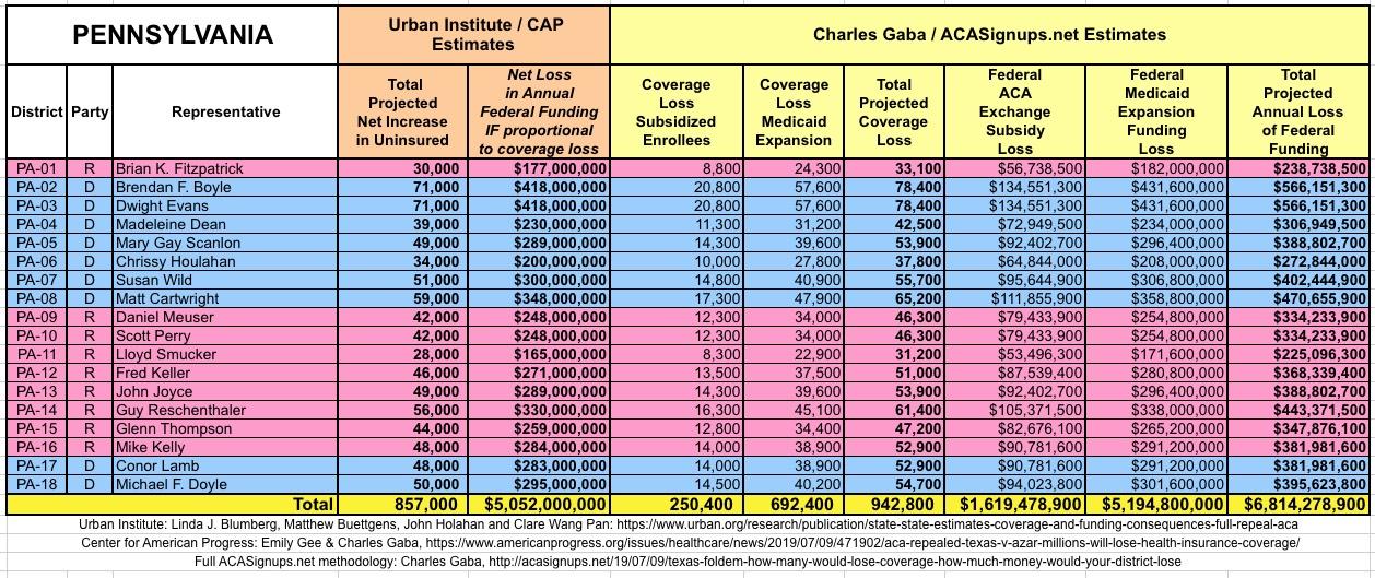 In March 2019, Linda J. Blumberg, Matthew Buettgens, John Holahan and Clare Wang Pan of the Urban Institute ran a detailed analysis to determine what the impact on healthcare coverage would be in every state if the Texas vs. U.S. lawsuit (aka Texas vs. Azar or #TexasFoldEm) caused the Patient Protection & Affordable Care Act (ACA) to be repealed with immediate effect.