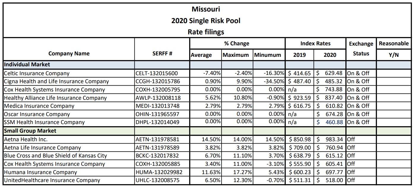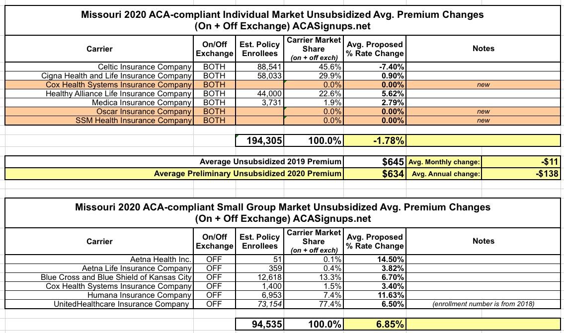 Missouri: Preliminary avg. 2020 #ACA rate changes: 1.8% *decrease*