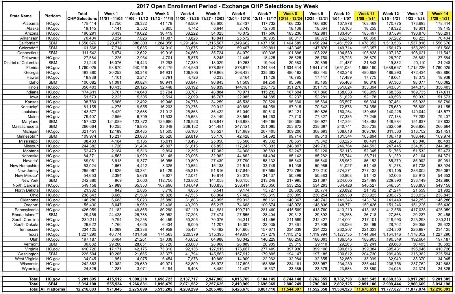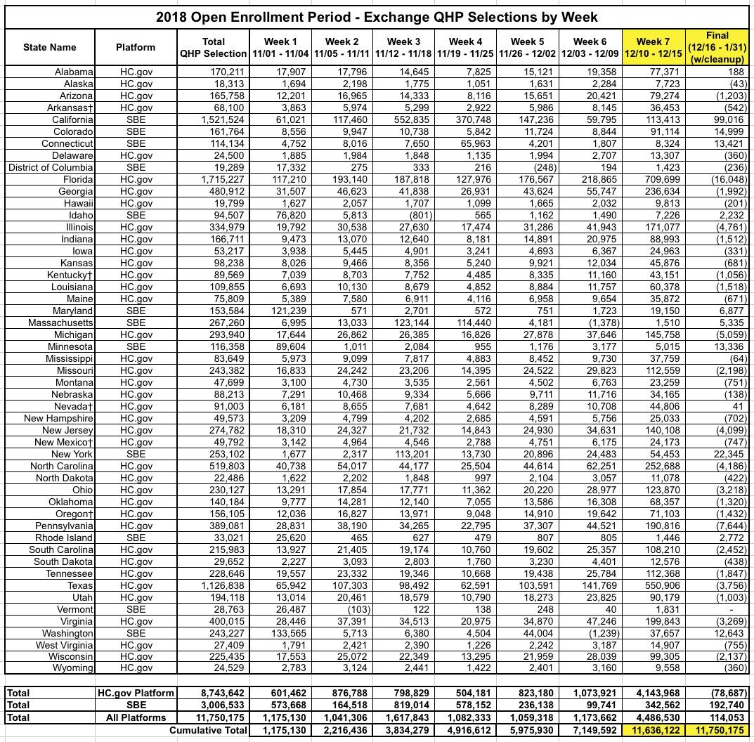 There's still some fuzziness since, again, nine states stuck with enrollment deadlines later than December 15th: