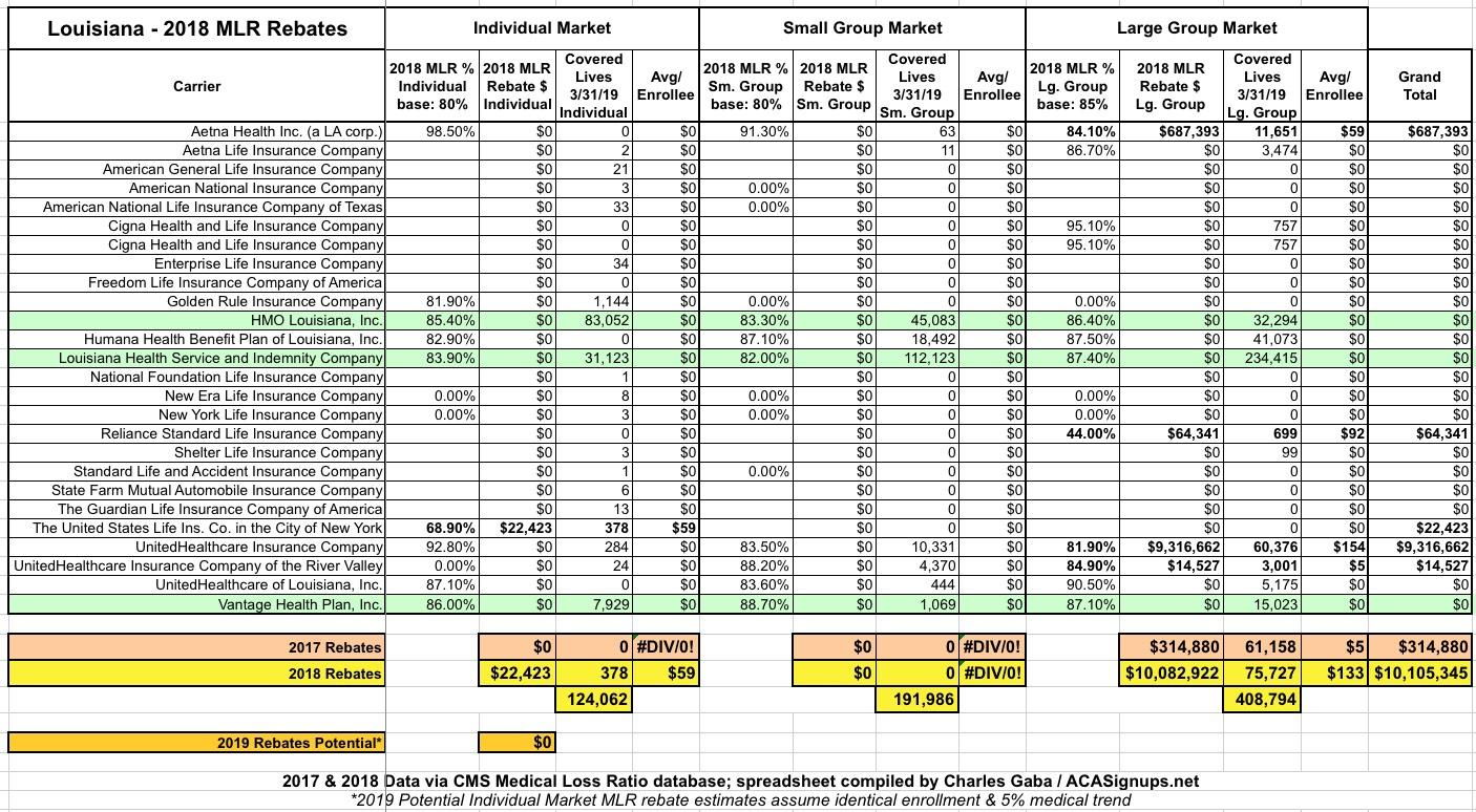 Louisiana: Large Group enrollees to receive $10 million in 2018 MLR rebates