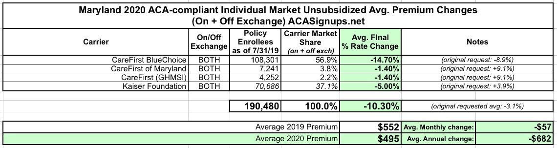 Well, today the Maryland Insurance Department announced the approved rates for 2020...and it's even better than that: