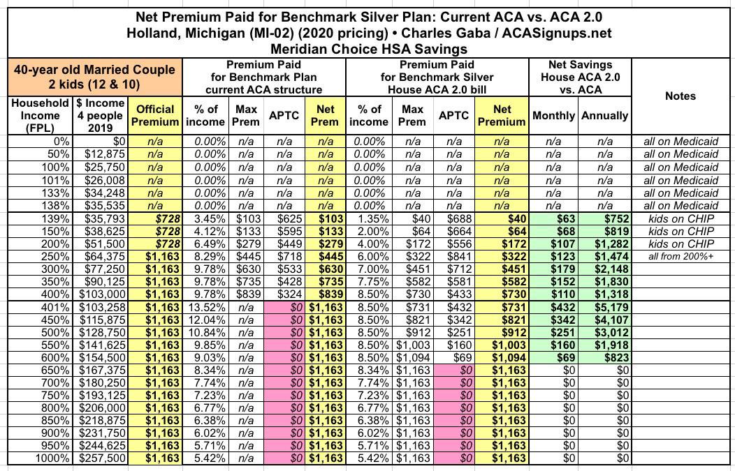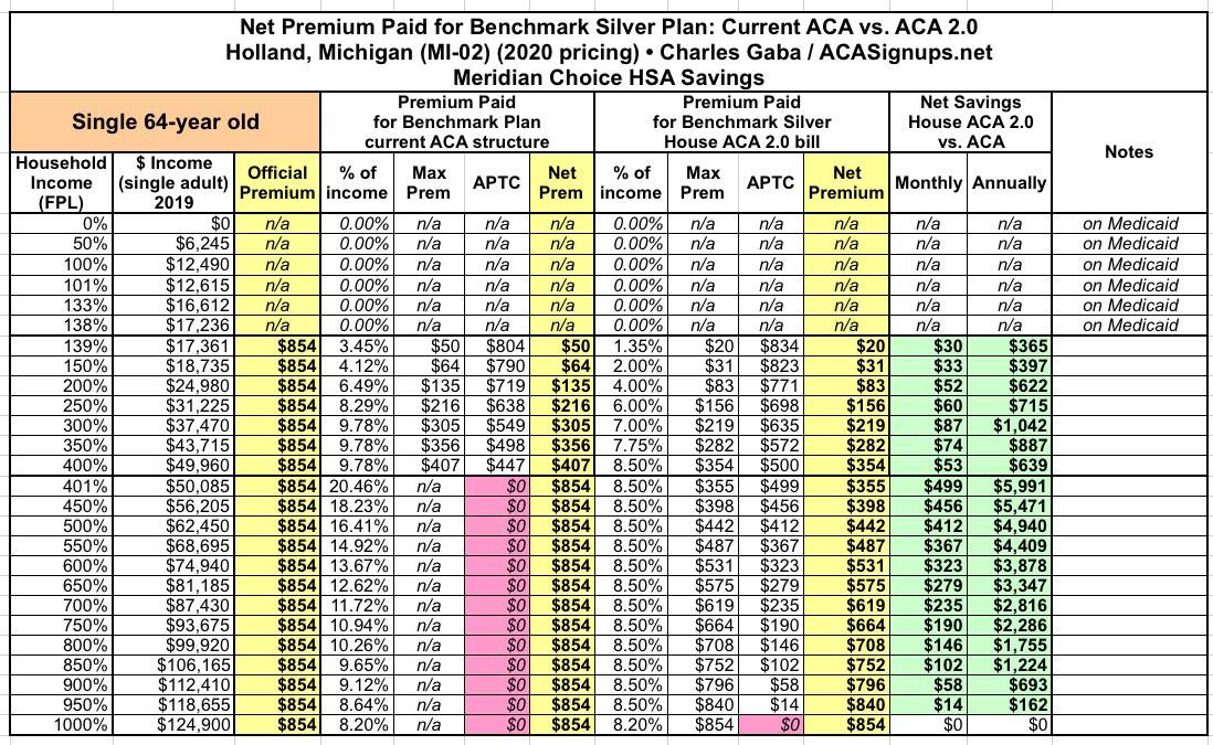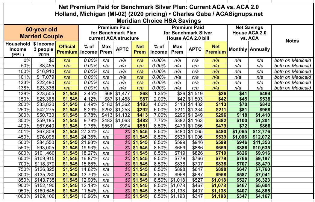 Under ACA 2.0, again, they'd pay no more than 8.5% in premiums, reducing their net premiums from $1,545/month down to as little as $480/month, a reduction of a whopping $12,776/year.