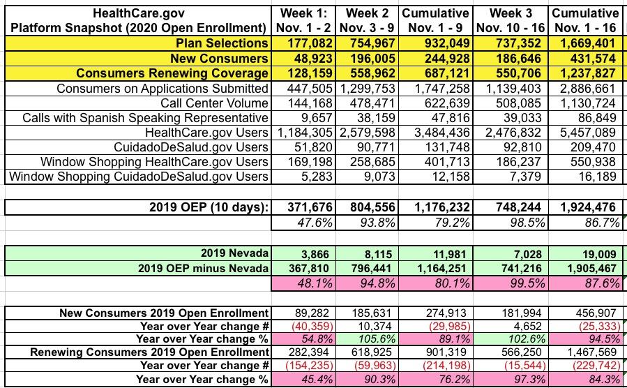 All three of these factors still leave 2020 Open Enrollment around 90,000 short of the same time period last year on HealthCare.Gov.
