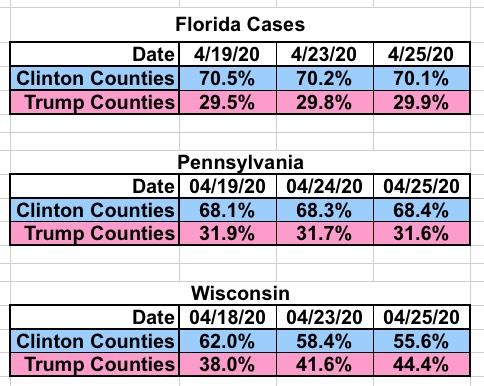 What about other states? Well, I don't have the day-by-day numbers for other states, but I have been spot-tracking the county-level data for Florida, Wisconsin and Pennsylvania. Let's take a look: