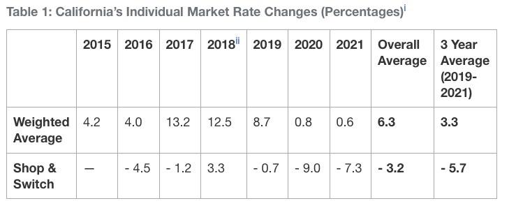 California’s Individual Market Rate Change for 2021
