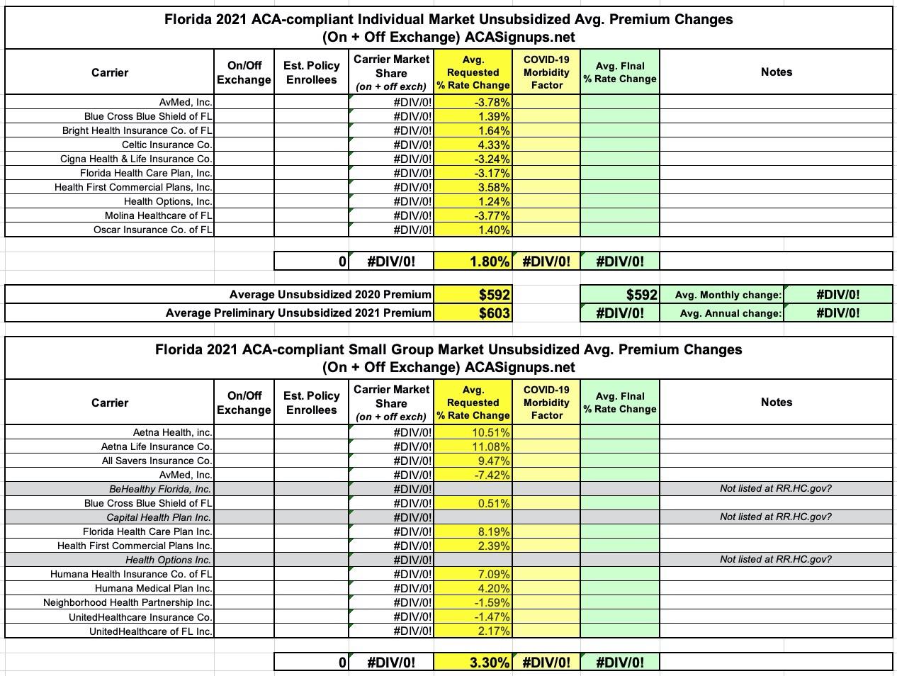 Florida: Preliminary avg. 2021 #ACA premiums: +1.8% individual market; +3.3% sm. group