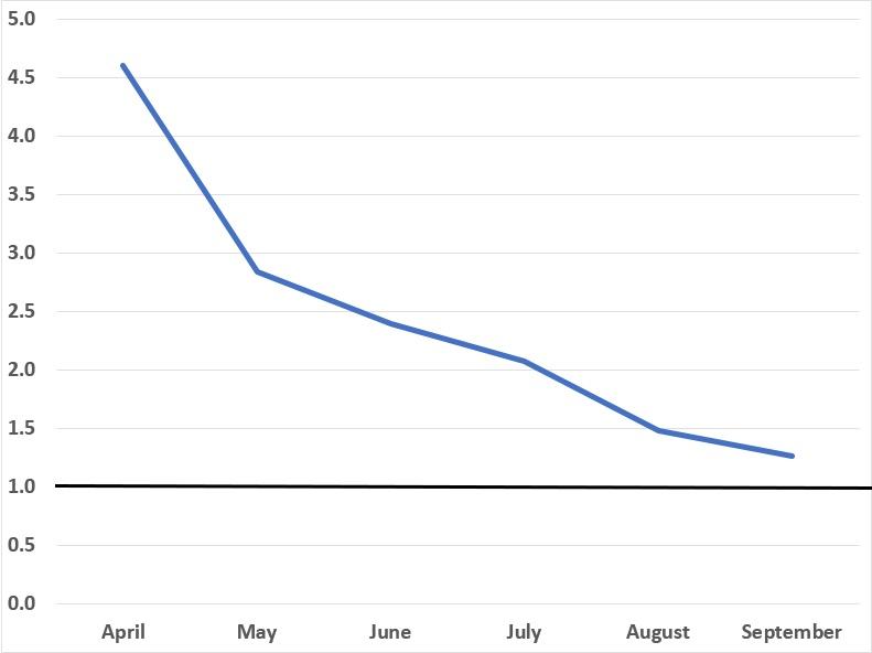 - Sep 15th: 1.26x higher in Blue Gov states