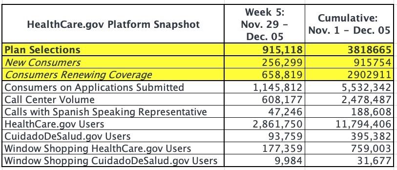 However, it's also important to note the breakout between current enrollees actively renewing their policies and new consumers enrolling.