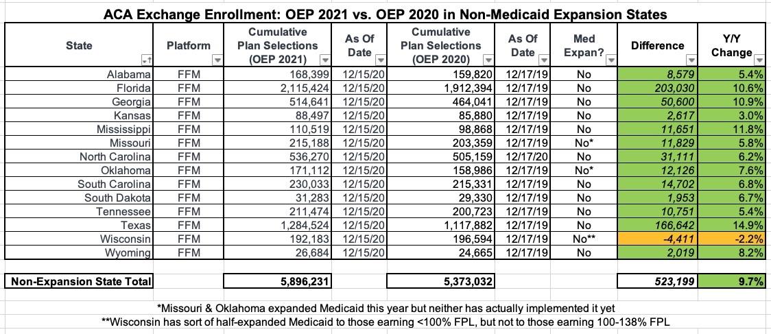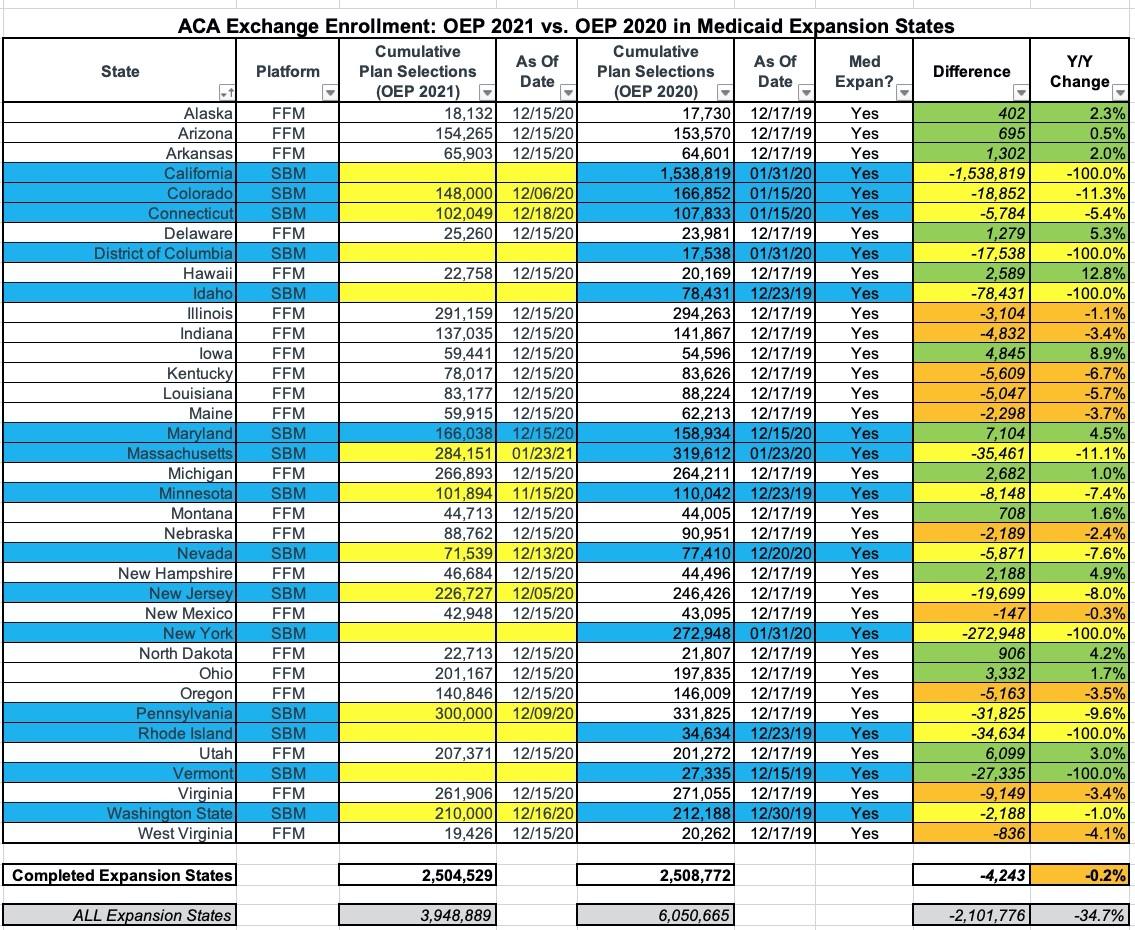 With Maryland added, average Expansion State enrollment year over year goes from -0.5% to -0.2%, a slight improvement. The full picture won't be known until the other 14 SBM states release their final OEP data, of course.