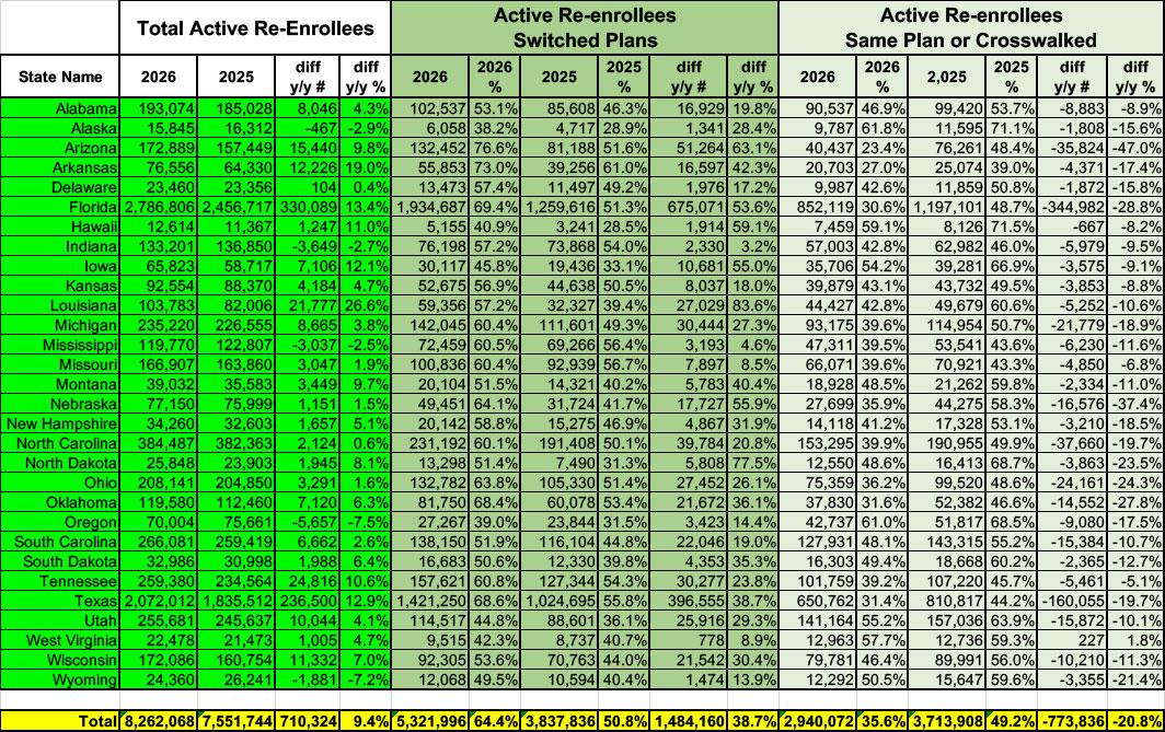 Of those who did actively re-enroll, over 5.3 million switched policies this year...64% of all active renewals, up a whopping 1.5 million people (+39%) over last year.