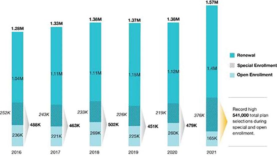 [1] All plan selections since the end of 2020 open enrollment through Dec. 31, 2020, including new enrollments during both 2020 special enrollment and 2021 open enrollment.