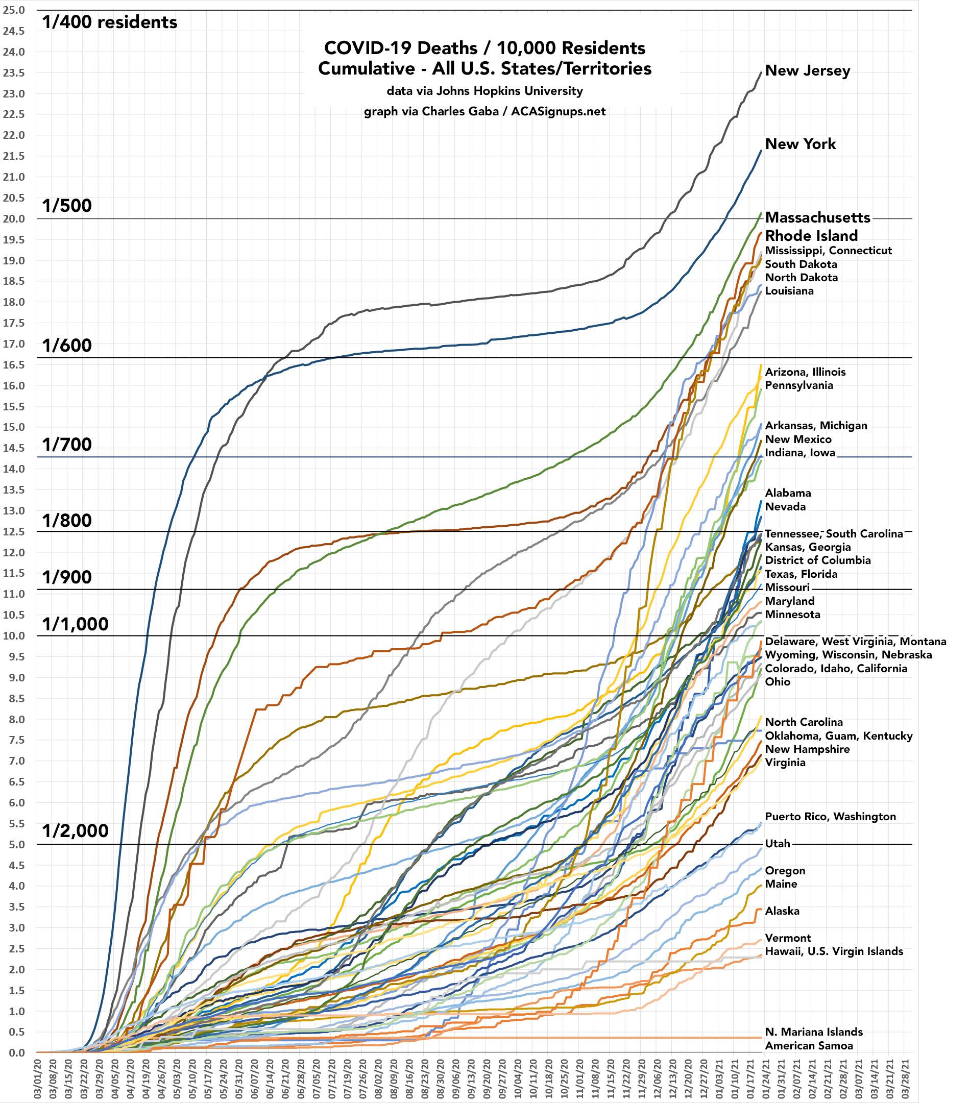 It's killed more than 1 out of 600 residents of Rhode Island, Mississippi, Connecticut, North & South Dakota & Louisiana.