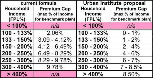 For the most part, I've focued on the Advance Premium Tax Credit (APTC) subsidy table first proposed way back in August 2015 by Linda J. Blumberg and John Holahan of the Urban Institute. The previous Big Supreme Court ACA Lawsuit Ruling had just come out (King vs. Burwell), and with the ACA having just been spared yet again (temporarily), Blumberg & Holahan proposed two major enhancements to the law: