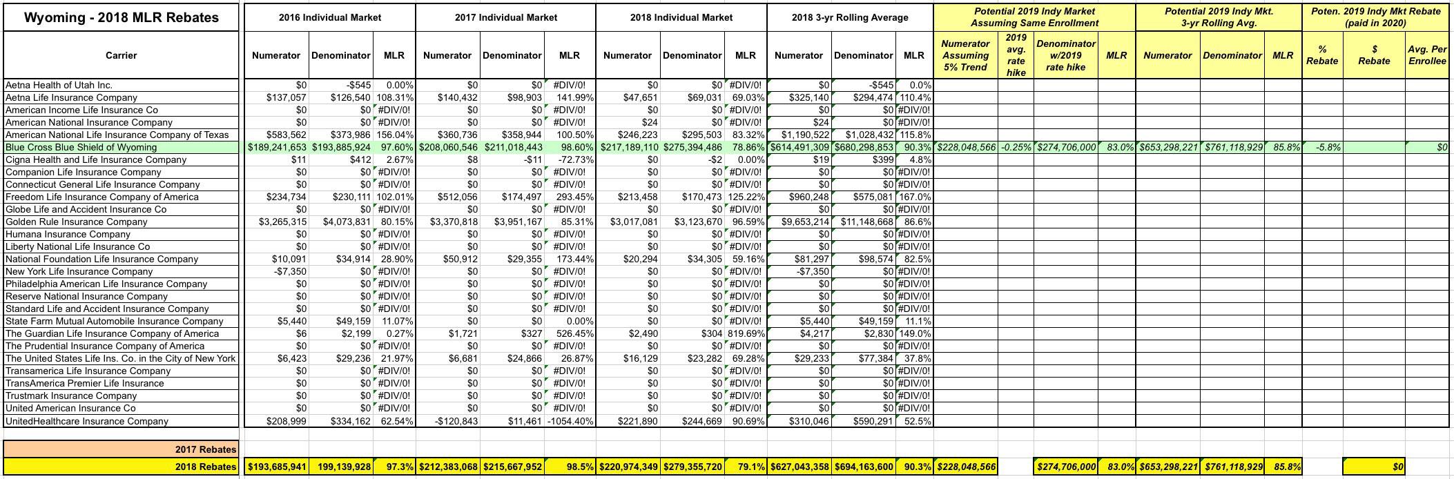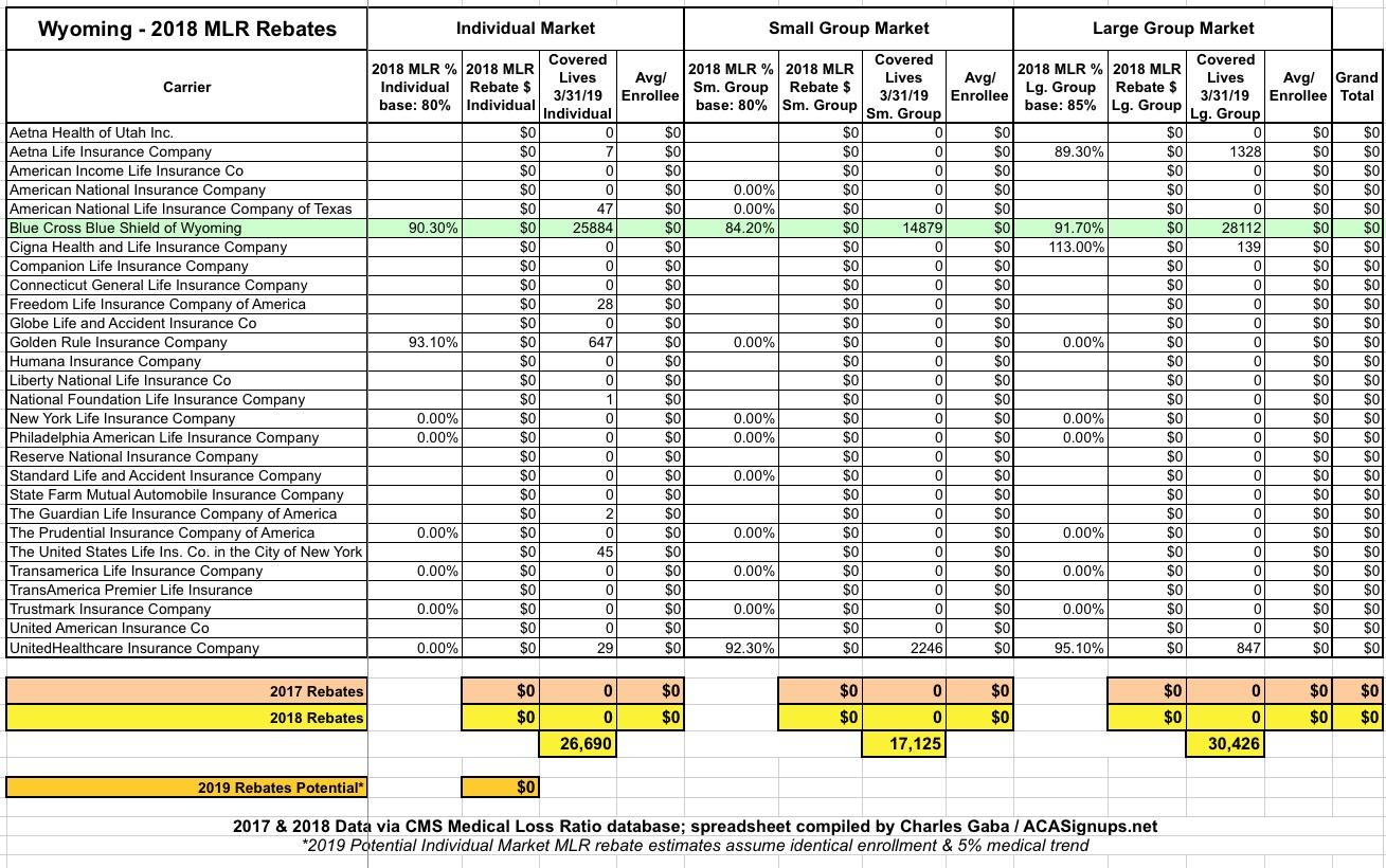 Wyoming: Sorry, ACA enrollees...no MLR rebates for you again this year