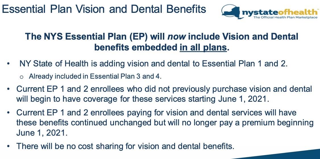 New York: Thousands of Essential Plan enrollees are about to gain free dental & vision coverage thanks to the #ARP