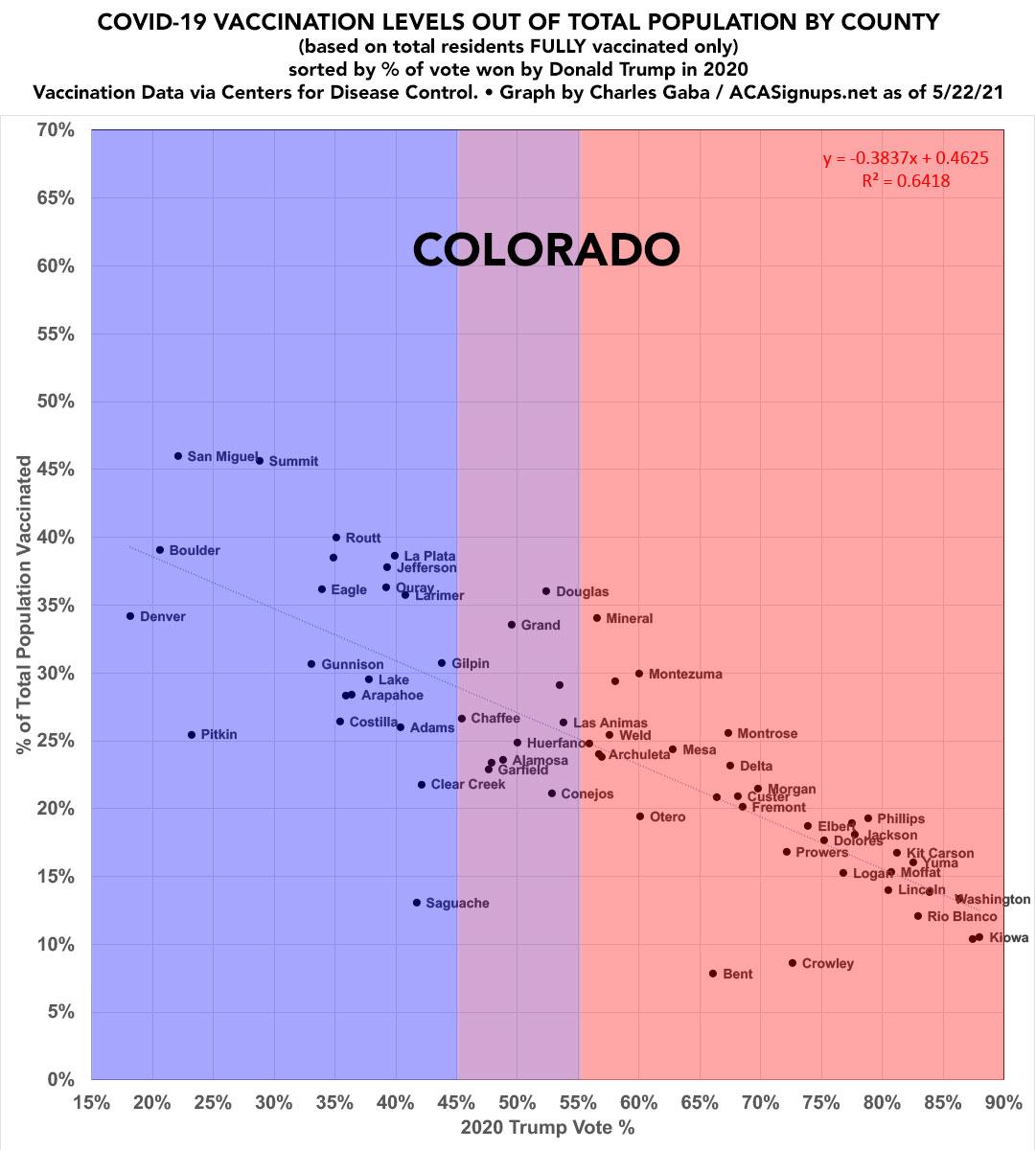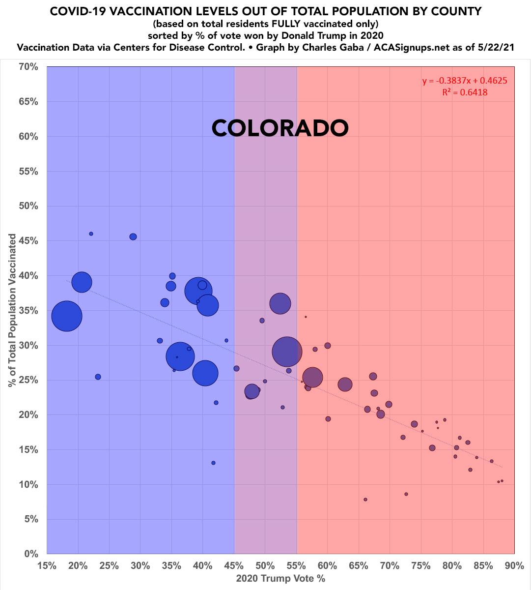 Colorado: #COVID19 vaccination rates by county & partisan lean