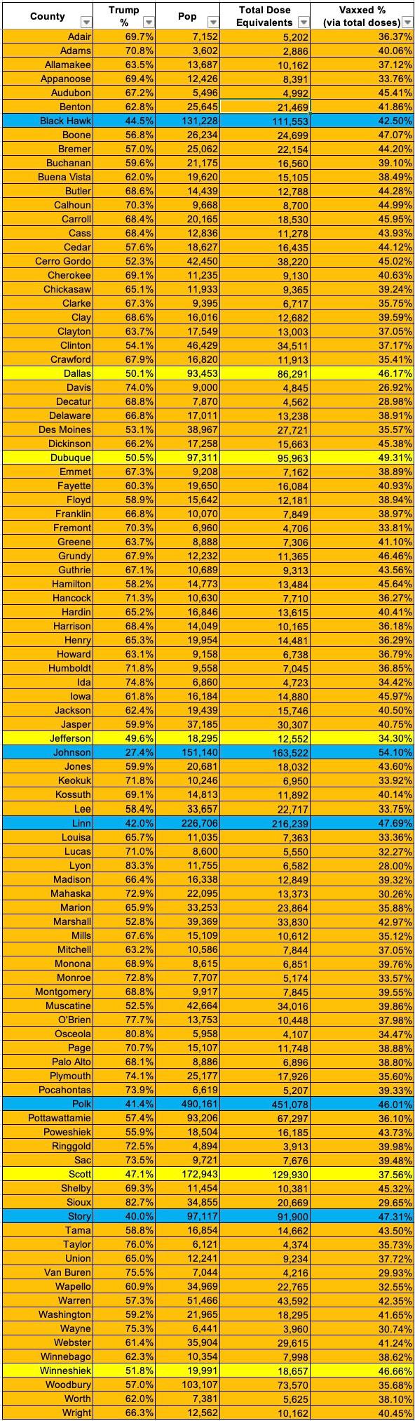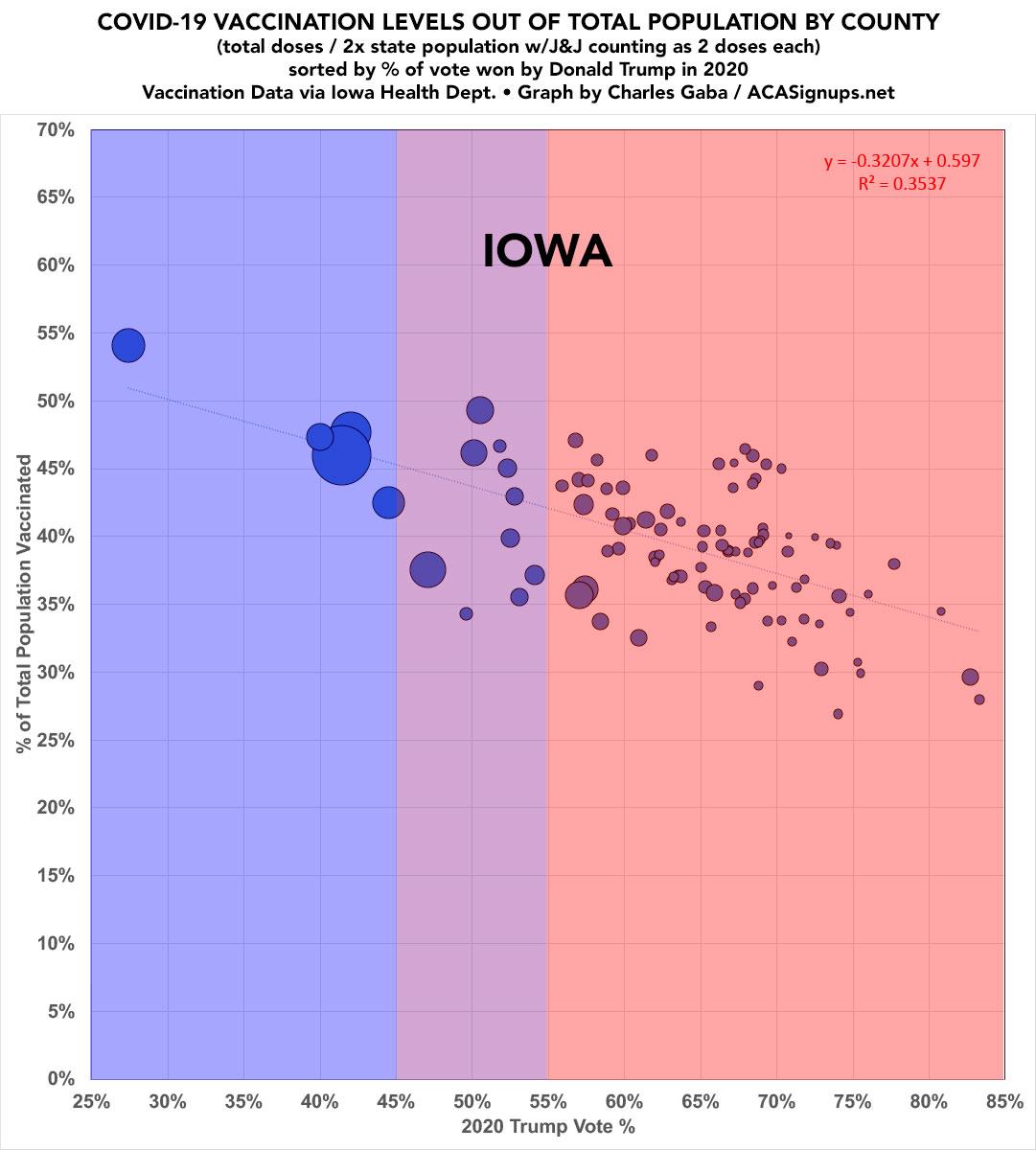 Iowa: #COVID19 vaccination rates by county & partisan lean