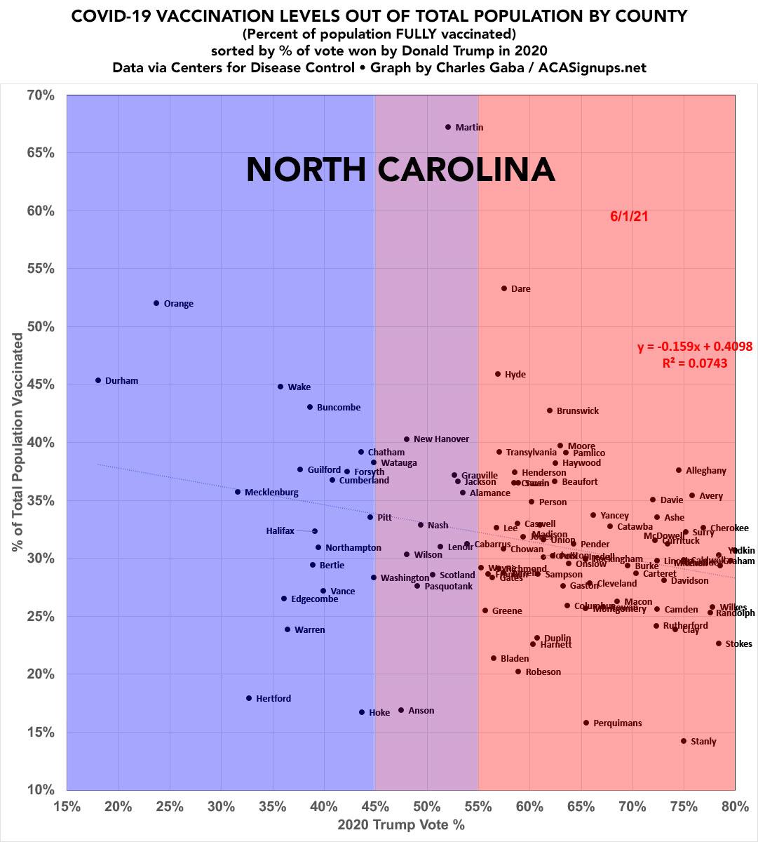 North Carolina: #COVID19 vaccination rates by county & partisan lean