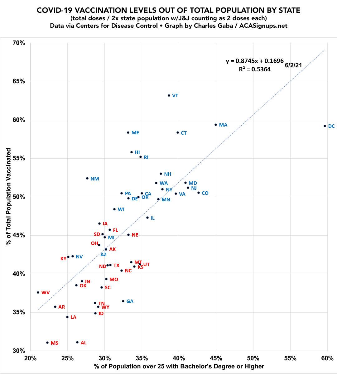 I then adjust each state by counting the single-dose Johnson & Johnson vaccine twice (since it's effectively similar to getting 2 Pfizer or Moderna doses).