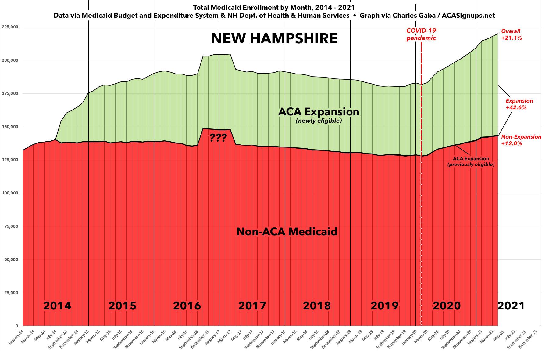 New Hampshire: Medicaid expansion enrollment up 43% since COVID struck; total Medicaid up 21%