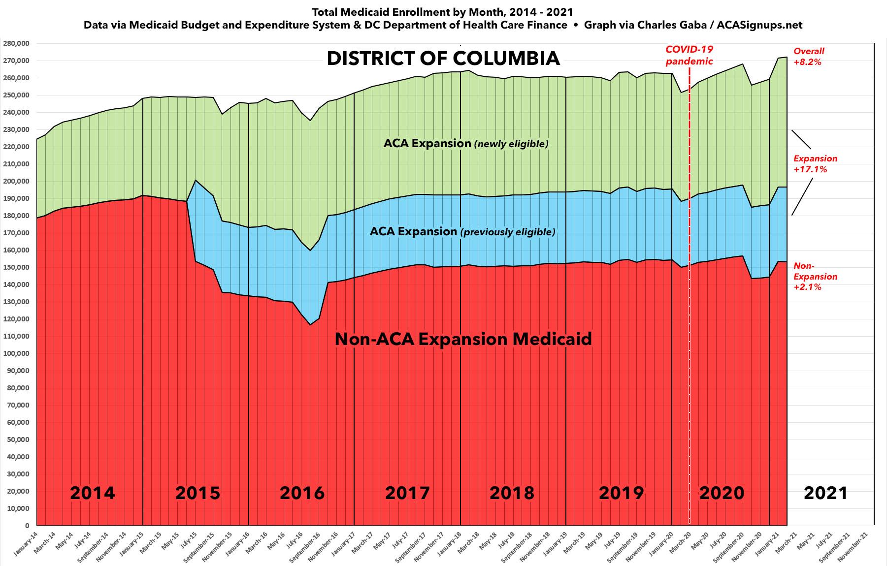 Today I'm presenting the District of Columbia. For enrollment data from January 2021 on, I'm relying on adjusted estimates based on raw data from the DC Dept. of Health Care Finance.